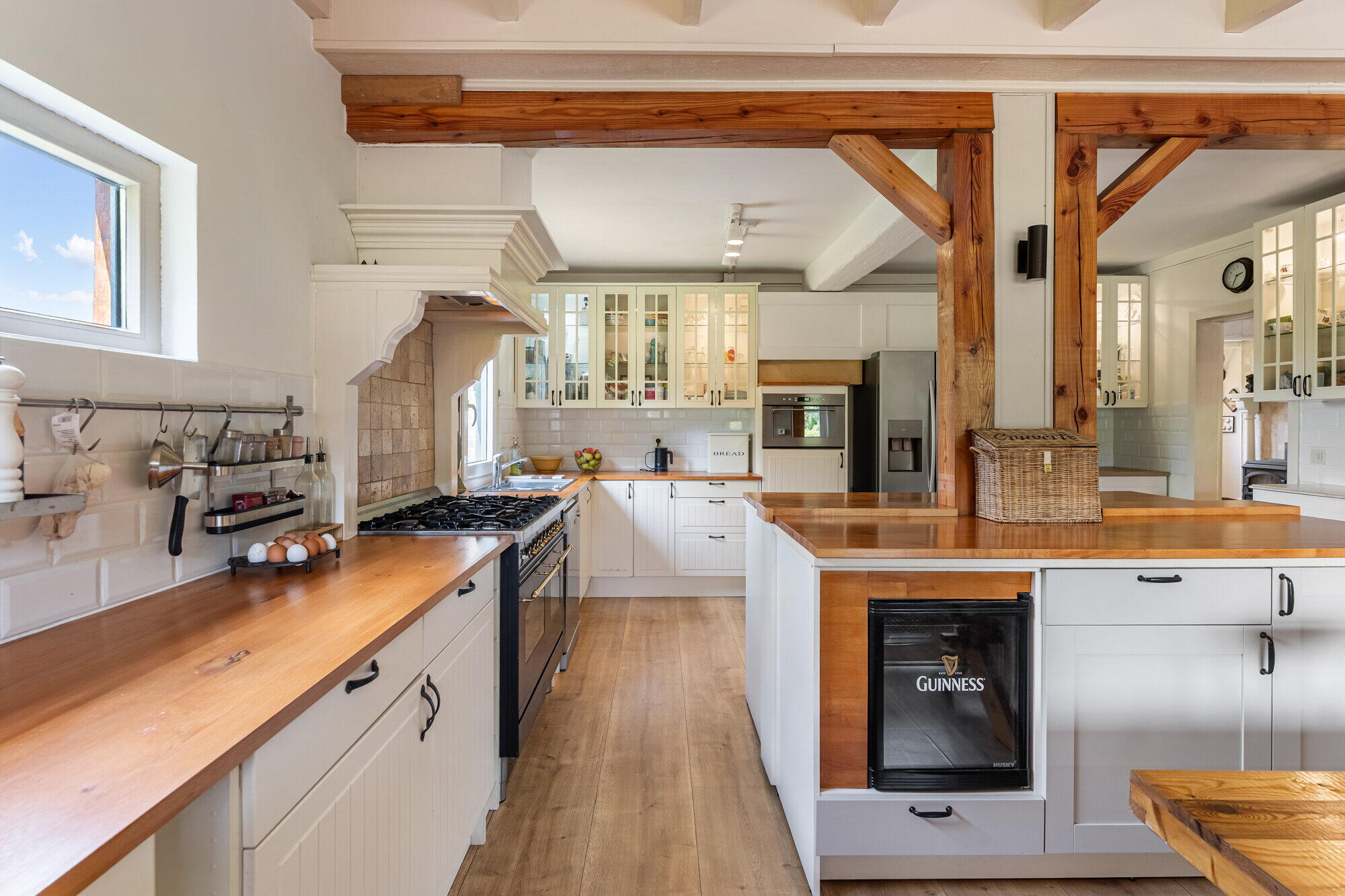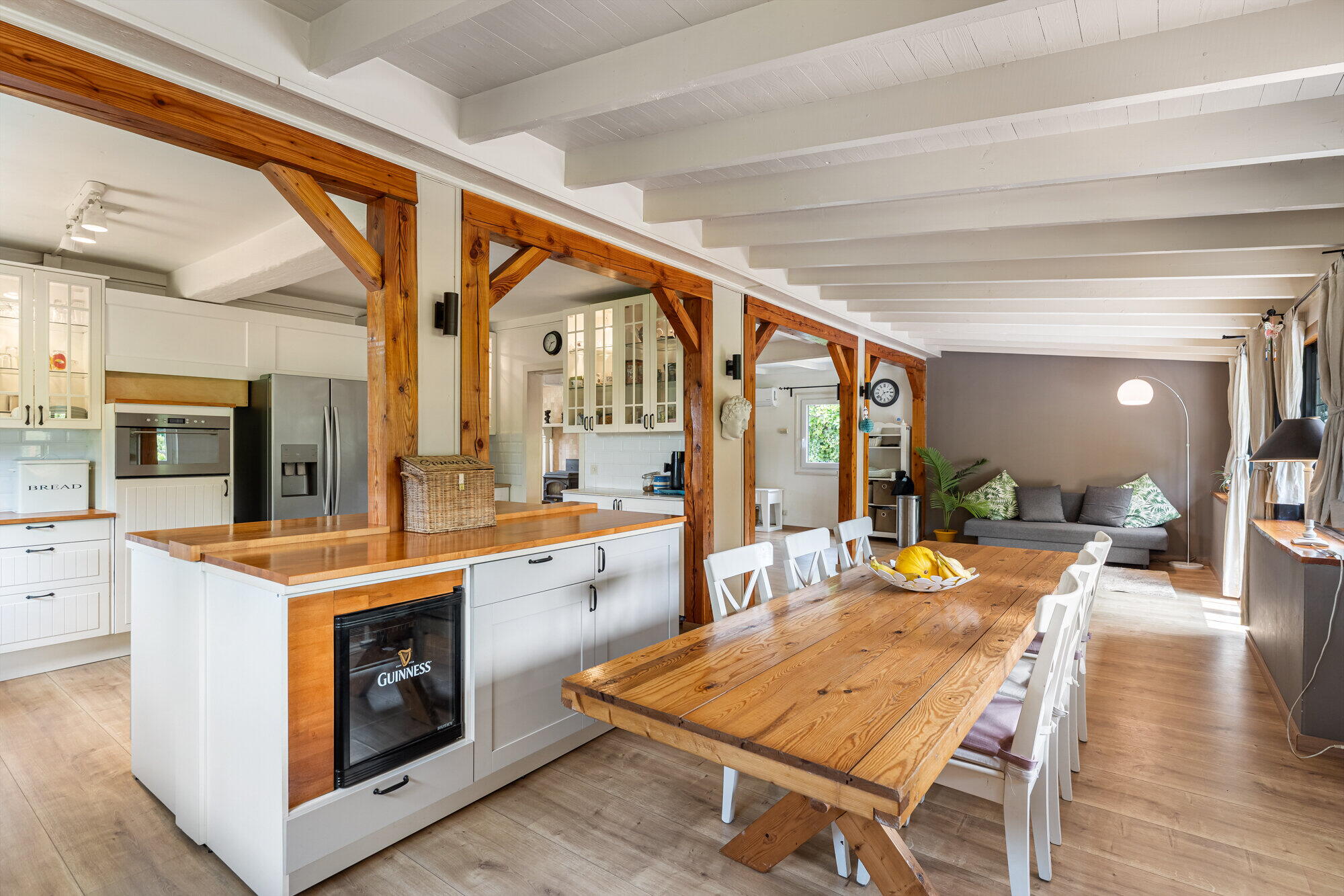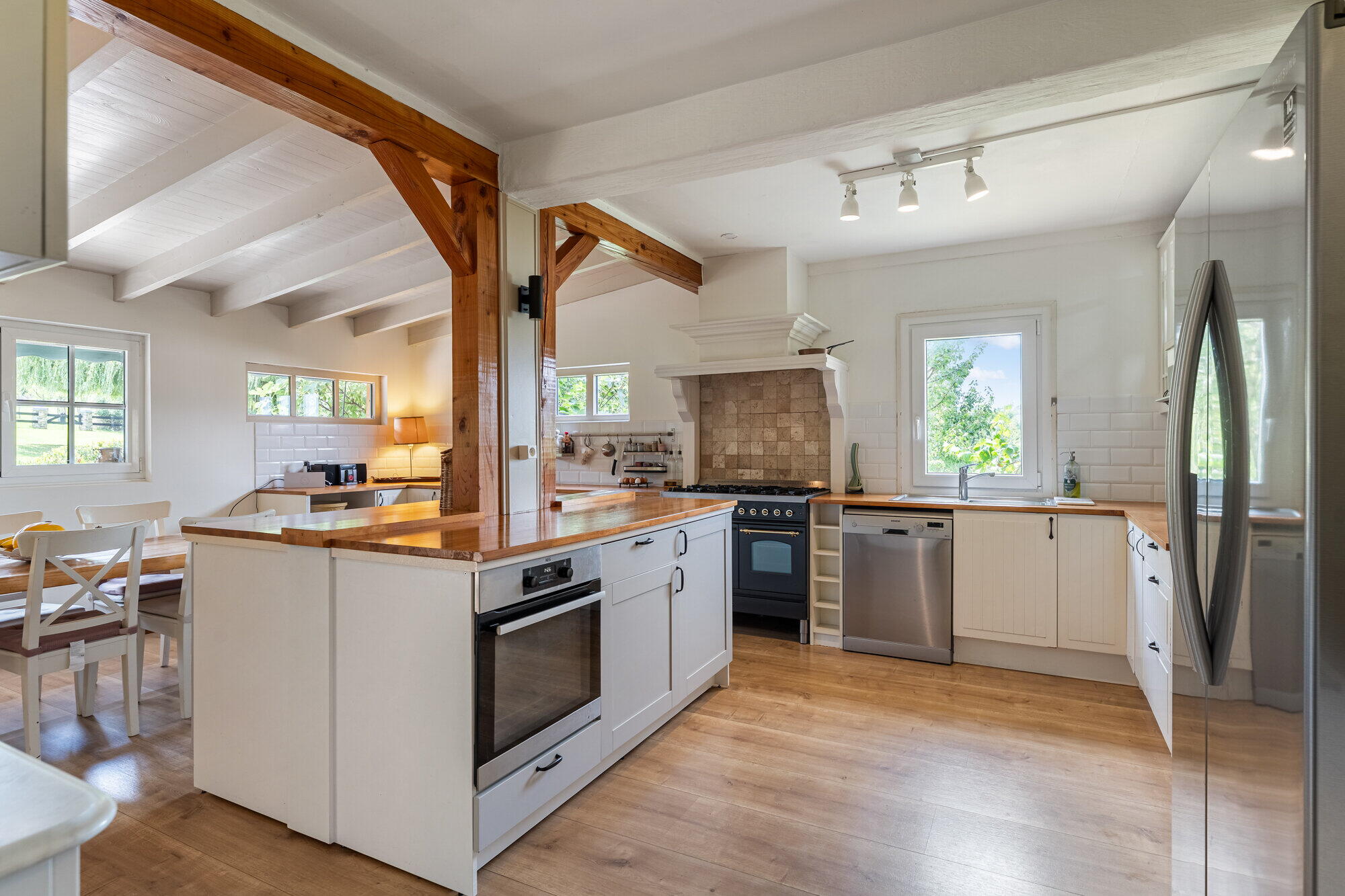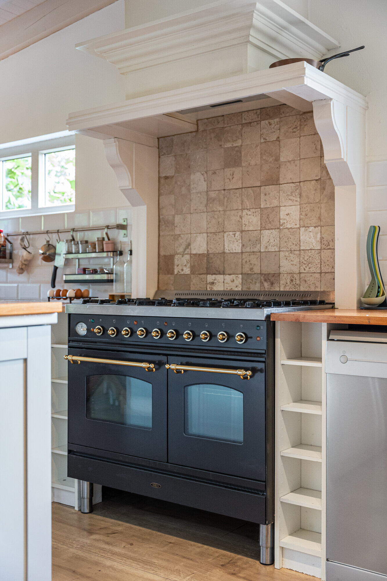 - Ruime open keuken (2020) voorzien van houten werkblad, kleine koelkast in het kookeiland (voor wijn eventueel), 6-pit Boretti gasfornuis met dubbele oven, vaatwasser (Siemens), RVS XL spoelbak met afdruip, combi-oven (Whirlpool), oven (AEG), afzuigkap (Pelgrim).