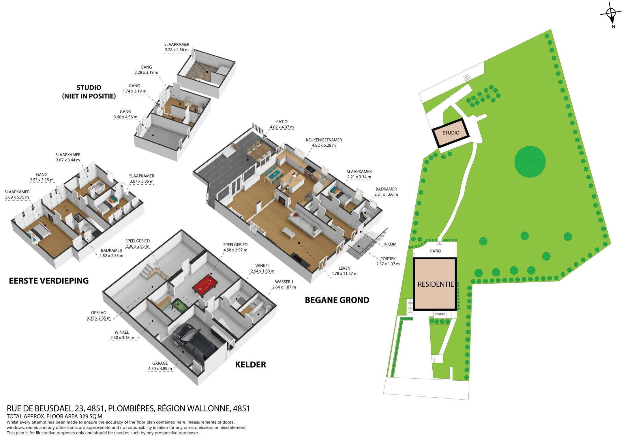 Im Freien finden Sie einen schön angelegten Garten mit Rasen, vollständig ausgewachsene Bäume und ein Terrassengebiet mit Steinfassade. Die charmante Architektur passt perfekt zum ländlichen Charakter der Umgebung. Auch die Vorderseite des Hauses ist vollständig mit Mauern umgeben und mit Naturstein beleuchtet, es gibt außerdem eine Parkplatzanlage für 6 Autos.